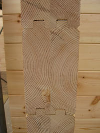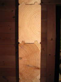 じれも小さいのでログのサネがぴったりとおさまりやすく垂直にログ壁が立ち上がっていきやすいのです。 芯を持っていると芯去り材に比べ耐久性があります