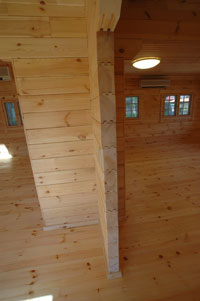 けをしてありますので迷う事もありません。またゲーブルエンド(妻壁までログを組む工法)ではなく2階部分を2×4で建てる場合は妻壁や室内の間仕切り壁