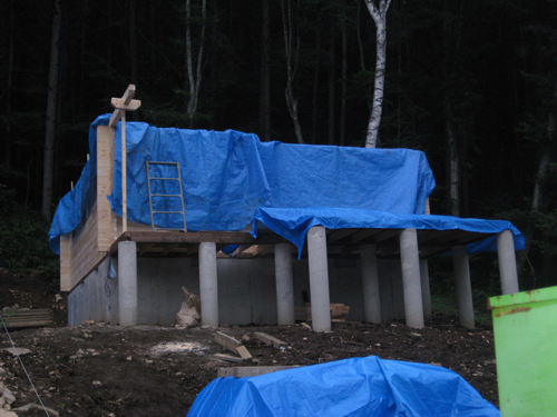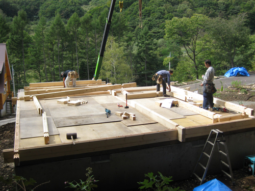 弊社では円滑にログハウスを屋根までおかけします!