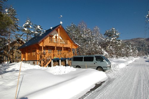 いろいろなお話を聞かせていただき今日は楽しい一日。 例年より雪が少ないという白馬村ですが40センチ近く積もっている白銀の世界でのログハウスは似合いますね!