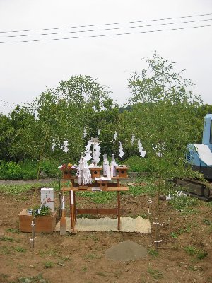 地鎮祭とはちょっとした豆知識ですが、建築工事に先立ち、土地の神に対して人間がその土地に家を建てることを報告し、その非礼を詫びる真心を示して、土地の神の怒りを鎮め、工事の安全を祈る、神道上の儀式です。儀式のやり方はその土地の風習や各神社によって異なります。