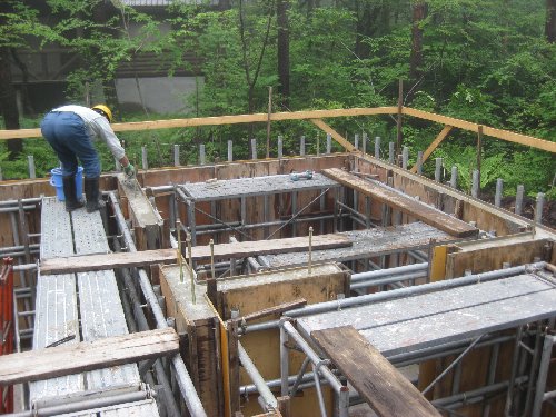 本日朝から北軽井沢にて建築中のF邸様の基礎コンクリートを打つ作業をしてまいりました。