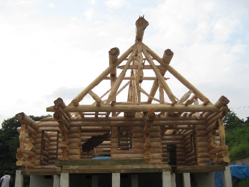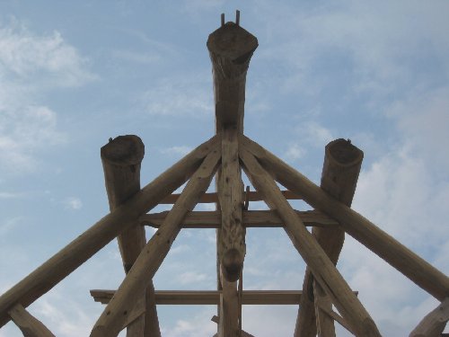 写真でご覧ください!迫力がありますでしょ。 棟、母屋の長さ13m、重さ700キロ。 なかなかお目にかかれない迫力ある国産杉を使用したハンドカットです。