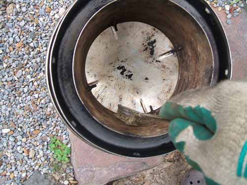 今年はタールが付きすぎて、煙道が塞がってしまいスズメが巣を作ってしまったので、春に一度掃除しました。