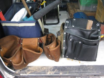 そんなに大したことではありませんが腰袋を新調しました。 以前はアメリカから取り寄せた腰袋を使っていたのですが(写真左)、ポケットが浅く、道具・ビス等が落ちてしまい使いづらい現状。格好いいんだけど機能性がないので、写真右のようなポケットが深い腰袋に変えました。 たまたま入ったホームセンターで見つけました。革なのでまだ固いですが、昨日使ってみていい感じでしたよ!