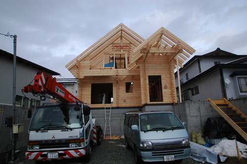 12月にジャスコ東根店にモデルルームオープン。在来もログハウスもしっかり施工ですよ。