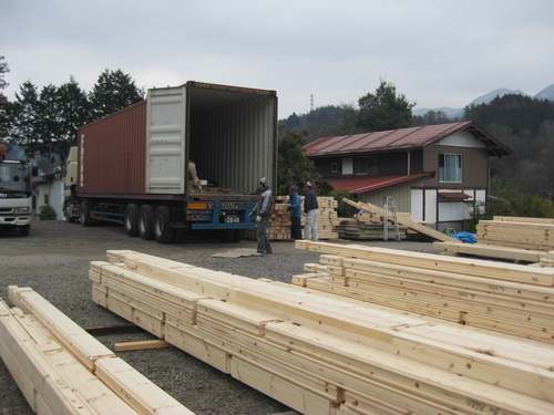 こんにちは野口展孝です。 本日から群馬県高山村にてモデルH邸、中国新工場ログハウスの105×180mmラミネートログハウスの建築がはじまりました。