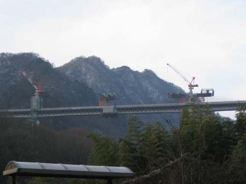 2-22002.jpg朝、政権交代後に有名になった八ツ場ダムの写真を撮りました。 この橋見たことございませんか? もう少しでつながるのではないかなと思います。