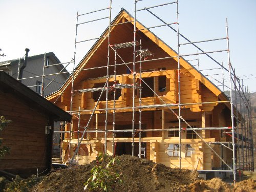群馬県高山村にて建築されている中国ラミネートログハウス105mm厚のH邸様、工事順調に進んでいます。