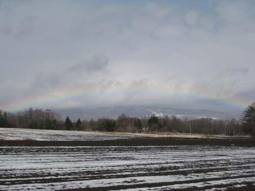 本日、幸せのフクロウにつづき、幸せの虹を見ることができました。 きれいに映っているのがわかりますか?今日はこの虹のおかげで楽しくお仕事させていただきました。