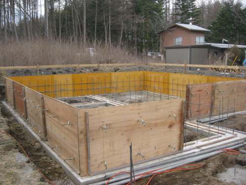 配筋したらパネコートコンパネにて型枠を組んでいきます。 本日は外周を組み終えることができました。