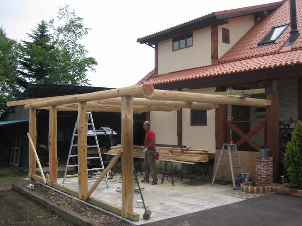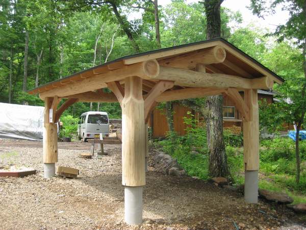 躯体を家と連結させて片流れのガレージを作っています。 完成が楽しみですね。