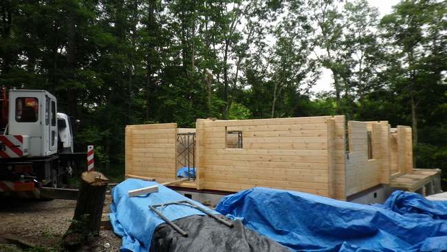 ログ壁2段目〜13段まで積み上げ作業は終了です。