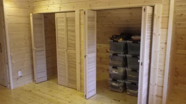 S邸様はログを5段増し積みして2Fの住空間を充実させております。 弊社は標準3段増し積みですが、5段積み増ししますと写真のようにかなり広い収納スペースが設けられます。 またログ壁にはベットも横に置く事ができ、2Fのプランニングにも幅がでてくるでしょう。