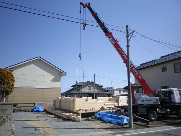 引き続き高崎市Y邸様のログ建て方工事です。 天気もよく日中は腕をまくりあげながら仕事しました。
