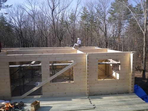 KL-29をアレンジした平屋ログハウス。材料はエストニア113mm厚ラミネートログハウスです。
