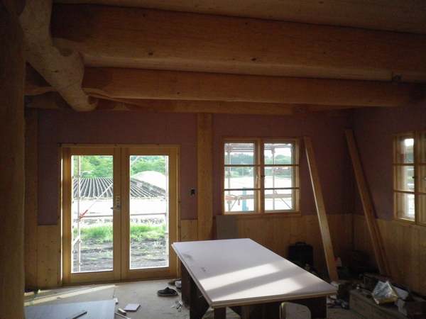 昨日午後から長野原町にて建築中のS邸様ポスト&ビームの現場行ってきました。 内装工事どんどん進んでいます。 エストニア高級木製ドア、窓使用。 2Fは板張り、床は28mmの無垢板です。