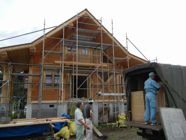 三井の森T邸様は2F造作がほぼ終わり、大工さんがテラス工事していました。