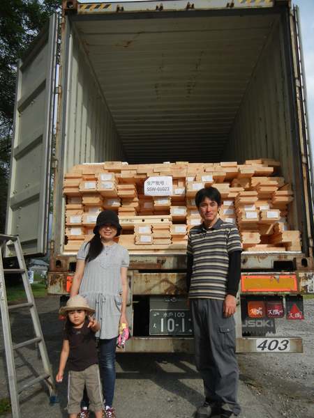 コンテナを開けいよいよログキットとご対面。ご家族とログキットの写真をパチリ!