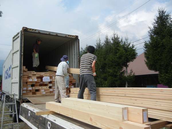 白馬村W邸ログキット到着しました