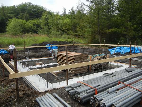 北軽井沢コンビニ近くではY様邸の基礎工事が始まっています。 敷地面積2500坪の中の一角に20坪のコンパクトなログハウス建築予定です。