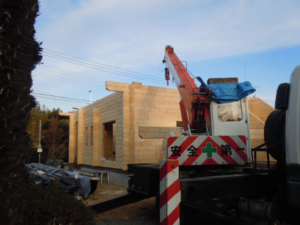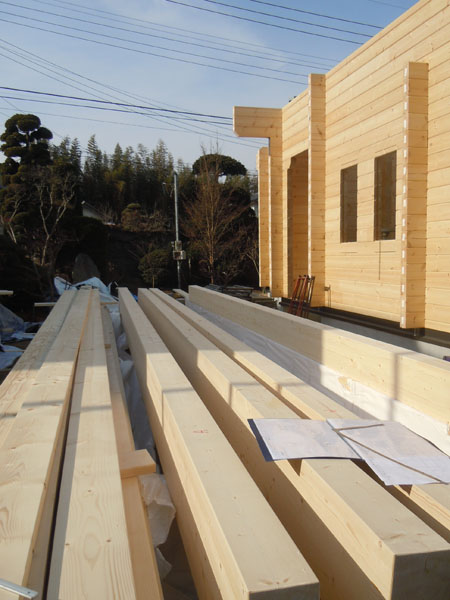 日曜日の今日もT様邸フィンランドログハウス建て方仕事こなしてきました。