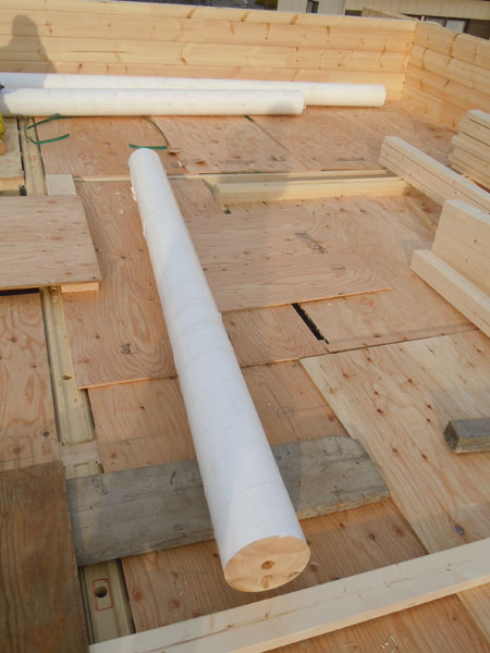 5日目の今日はログを組み終え、通しボルト作業、2F小屋組の段取りをしました。