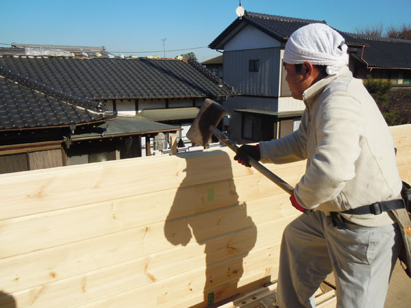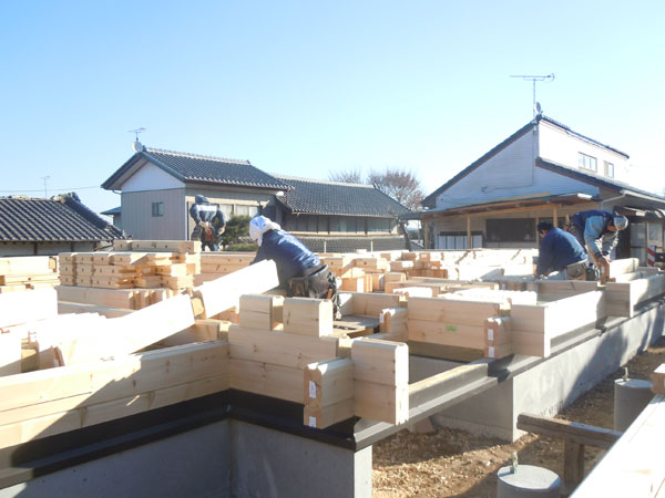 本日T様邸建て方3日目。 2段目から12段目まで積み上げました。朝と現場終わりの写真。職人さんが頑張って仕事している写真も撮りました。 T様もログ積みに参加。 おかげ様で仕事もスムーズに進みましたよ!