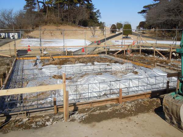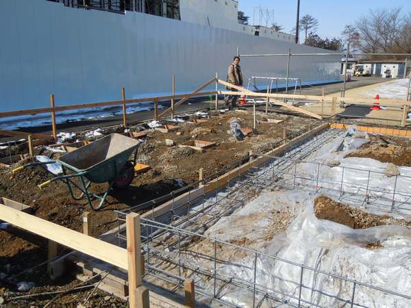 基礎屋さんが寒い中基礎工事頑張ってくれていました。基礎工事裏では既存クラブハウスの撤去作業中。 こちらは東京の業者さんの工事ですが、現場本体は大きな工事なので全体で2時間の打ち合わせ。 高原都市開発ログハウスがゴルフ場お客様を迎え入れますよ!