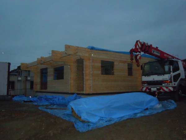静岡県掛川市K邸様ログハウス建て方四日目。
