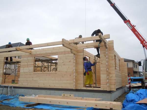 3. 静岡県掛川市K邸様ログハウス建て方四日目。