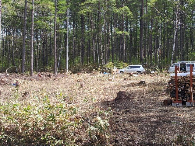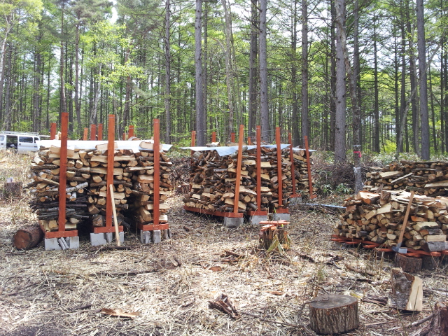土地ではY様が薪割りした薪が手作りのラックに収められていました。 冬の寒さが厳しい菅平での生活にむけ今から着々準備です。 しかしここまでよく割ったな〜と感心してしまいました。