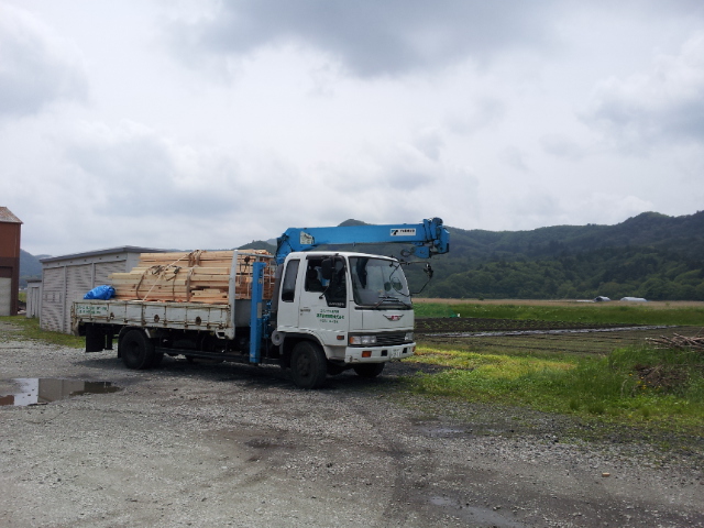 午前中でほぼ運び入れ、現場でどのように置けば大工さんが作業しやすいか思案中です。