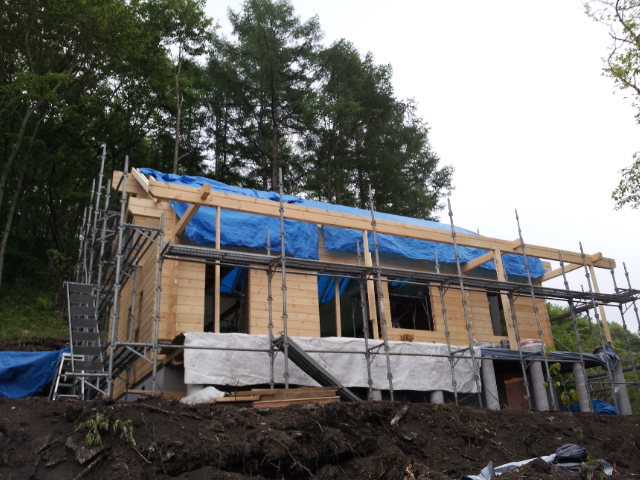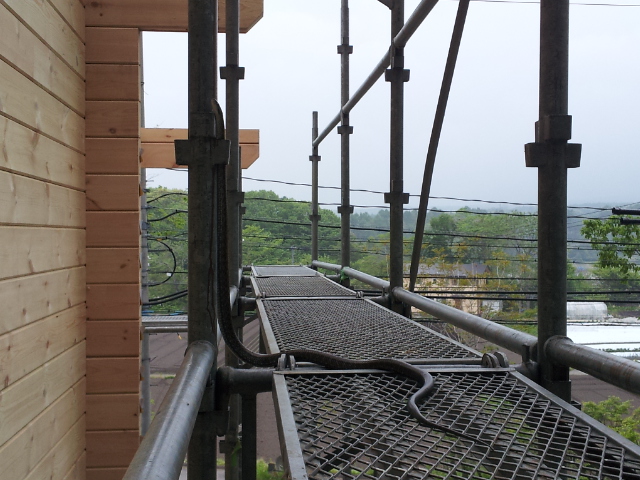3. 軽井沢A邸様ログハウス工事足場かかりました