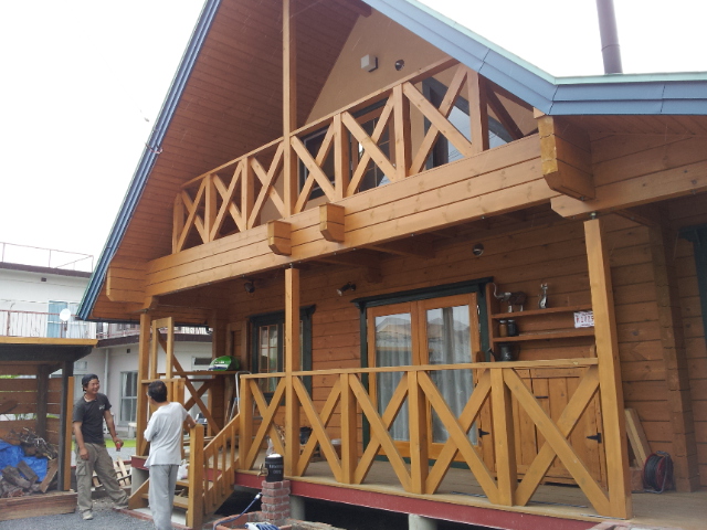 昨日は弟の真也と高崎市Y邸様メンテナンス作業に行ってきました。 Y邸様は行くたびに外溝やログハウスに手を入れています。 玄関の階段がスロープになったり、その階段をテラス側にもっていたりとセルフで楽しんでいるようです。