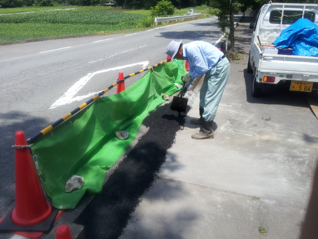 壊した部分をレミファルトというアスファルト材でならせば、ハイッ入口の完了です。