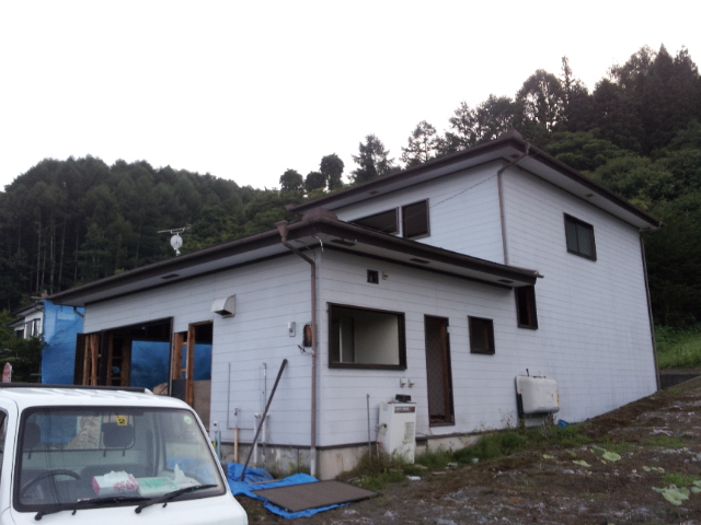 自宅解体工事ですが、職人さんに暑い中頑張ってもらいサッシ部分が外れました。