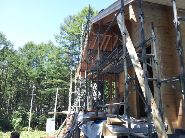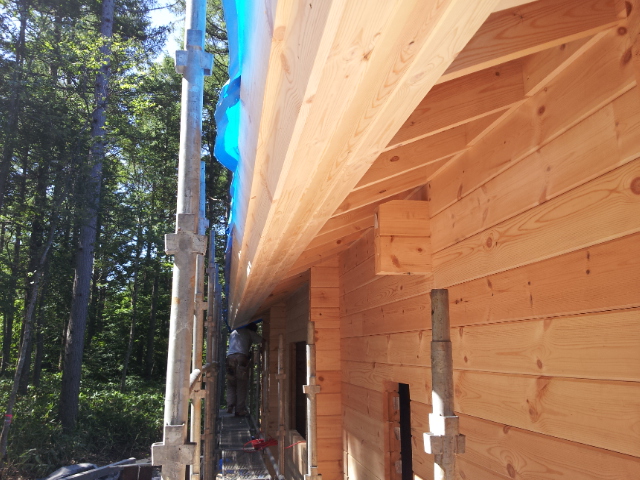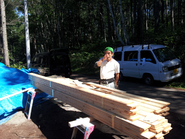 さて本日のチーム高原はY邸様軒裏天井施工工事です。 フサユキ大工がカット(MF)、山中さんと八坂大工が貼り係(FW)といったチーム構成で工事しました。 ディフェンスは工事には必要ありません!常に強気で工事頑張っています(影響されすぎですね〜笑)