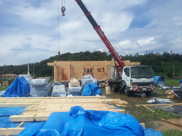 福岡県K邸様ログハウス建て方工事!頑張っていますよ〜(^o^)