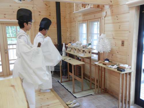 昨日高原都市新事務所が無事竣工となりました。 神主さんにお祈りしていただき弊社のますますの発展と工事の安全を祈願していただきました。
