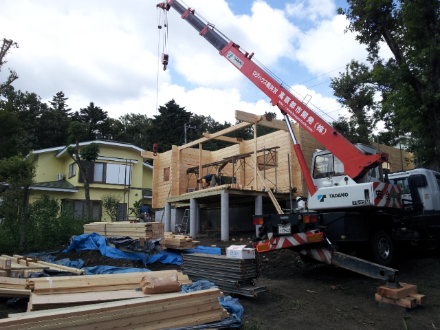 伊豆高原K邸様建て方4日目! ログ組終えました。
