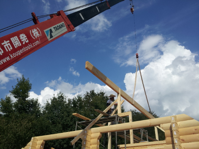 こんにちは!野口まーもんです。今日もいい天気でしたね。こんなに晴れが続くと仕事が進んで困りますね(^-^)/山梨県北杜市F様邸は、順調に進んでますよ!今日は、秋晴れの空の下、気持ちよく棟木を上げることができました。山ちゃんをはじめ房ぼー、健ちゃんのおかげであっという間に、垂木まで掛けることができましたよ。職人さんにもがんばってもらいお客様にもよくしてもらい高原都市開発は、皆様のおかげで成り立っています。これからもおかげさまでの精神を忘れずに良い家をつくっていきたいとおもいます。今、あれっ!ノブくんに似てるな!と思った方、下のボタンをポチっとな!まーもんでした。