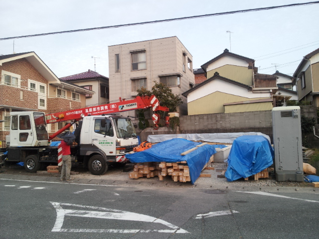 いや〜今日はかなり腰にきました。また道路脇で下ろしたという事でかなり気遣って仕事しましたがログキット荷下ろし無事完了!現地への搬入も無事終えました。