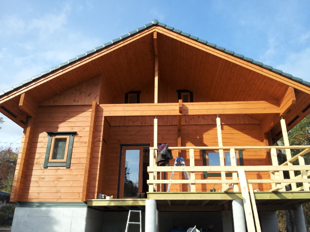 伊豆方面の高原都市ログハウス施工はリーフ吉井さんに一任します。細かい部分まで丁寧安心施工。しかも男前!
