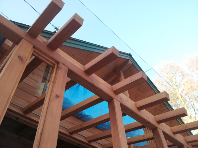 本日、サンルームの現場の屋根。ポリカが貼れた。との情報あり!見に行くとスーパークリアーで貼ってあるかわからなかったですよー(>_<)まーもんでした!![]()