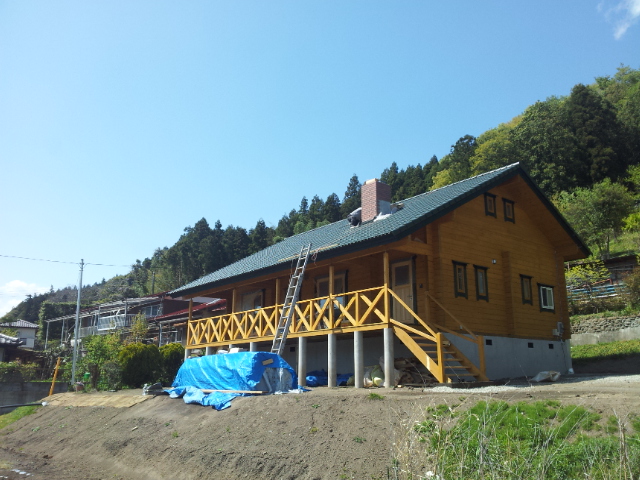 私今のところお休みなくお仕事楽しく働かせていただいています。土曜日は完成間近の群馬県安中市T邸様ログハウス現場にて仕上がり状況の確認、外部片付け行ってきました。心配された電気送電も無事終わっていて一安心。煙突タイルを黒岩官業さんが仕上げていました。もう少しで完成お引き渡しとなります。