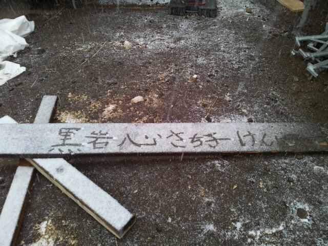 土曜日の3時過ぎから雪が降り、急いでブルーシートかけて、垂木つなぎ、金物施工完了しています。本日は野地板はる準備ですが、明日から岩手出張。大工さんがいなくなってしまうのでしばし現場休憩します。