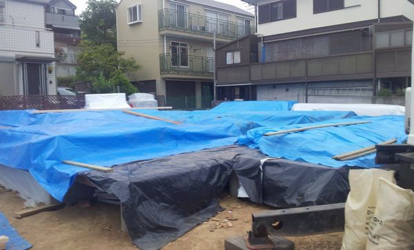 明日は雨予想なのでブルーシートでしっかり養生です。