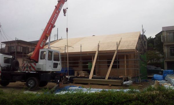 3. 神奈川県大磯町I邸様ログハウス工事!野地板張り始めました。