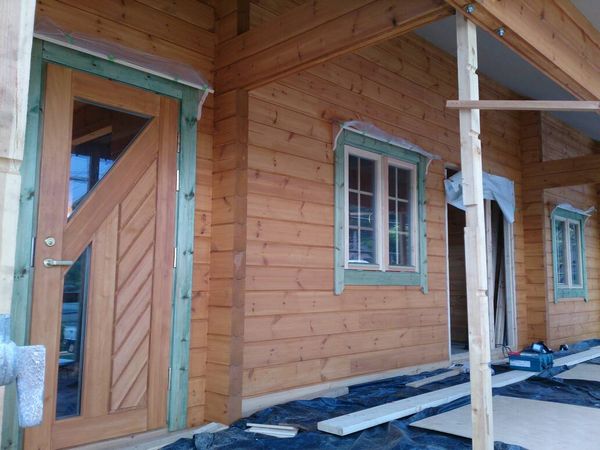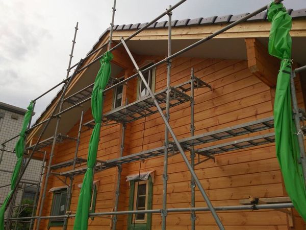 ケーシングの緑もログの色にマッチ。 工事順調に進んでいます。![]()